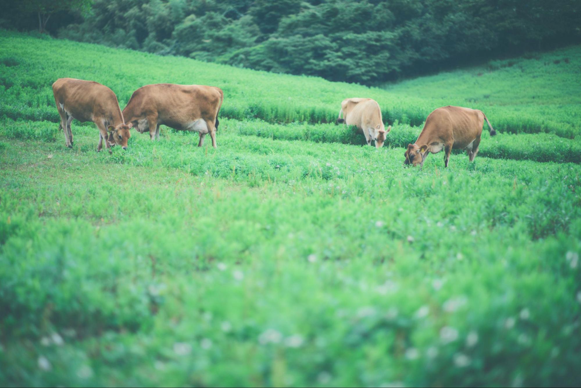 自然の中でのびのび過ごす牛と牛人間の寺西さん